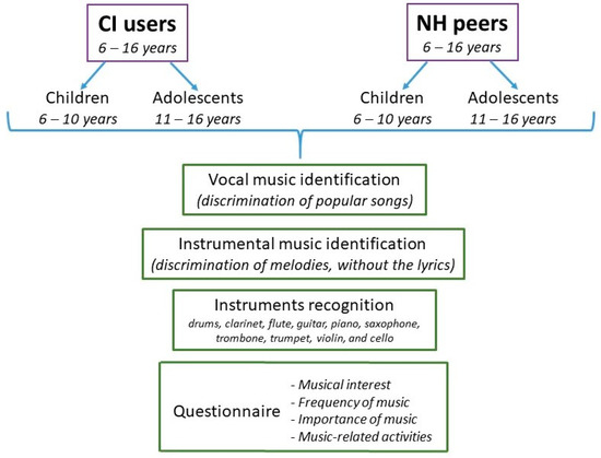 - Yüksel, M.; Atılgan, A.; Çiprut, A. Music Listening Habits and Music Perception Abilities of Prelingually Deafened Adolescent Cochlear Implant Recipients. J. Am. Acad. Audiol. 2020, 31, 740–745. [Google Scholar] [CrossRef]