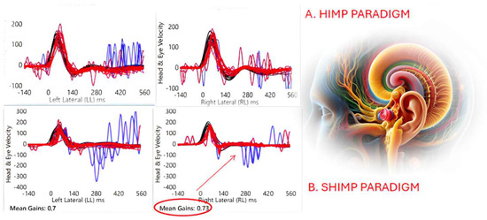 - Manzari, L.; Tramontano, M. Suppression Head Impulse Paradigm (SHIMP) in evaluating the vestibulo-saccadic interaction in patients with vestibular neuritis. Eur. Arch. Otorhinolaryngol. 2020, 277, 3205–3212. [Google Scholar] [CrossRef]