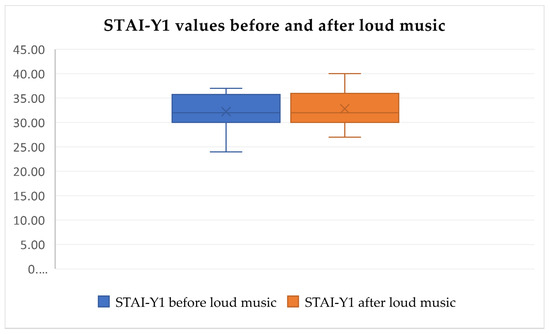 STAI-Y1 scores do not change significantly after loud music exposure (Friedman’s test, χ2 = 133.892, df = 5, p > 0.05).