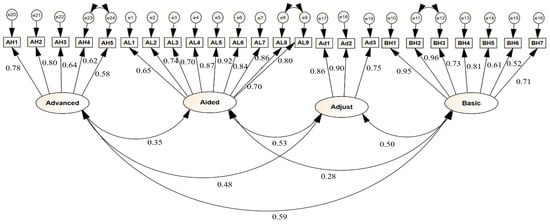 The final measurement model of the research and its parameters using standardized coefficients. AH: Advanced Handling, AL: Aided Listening, Ad: Adjustment, BH: Basic Handling.