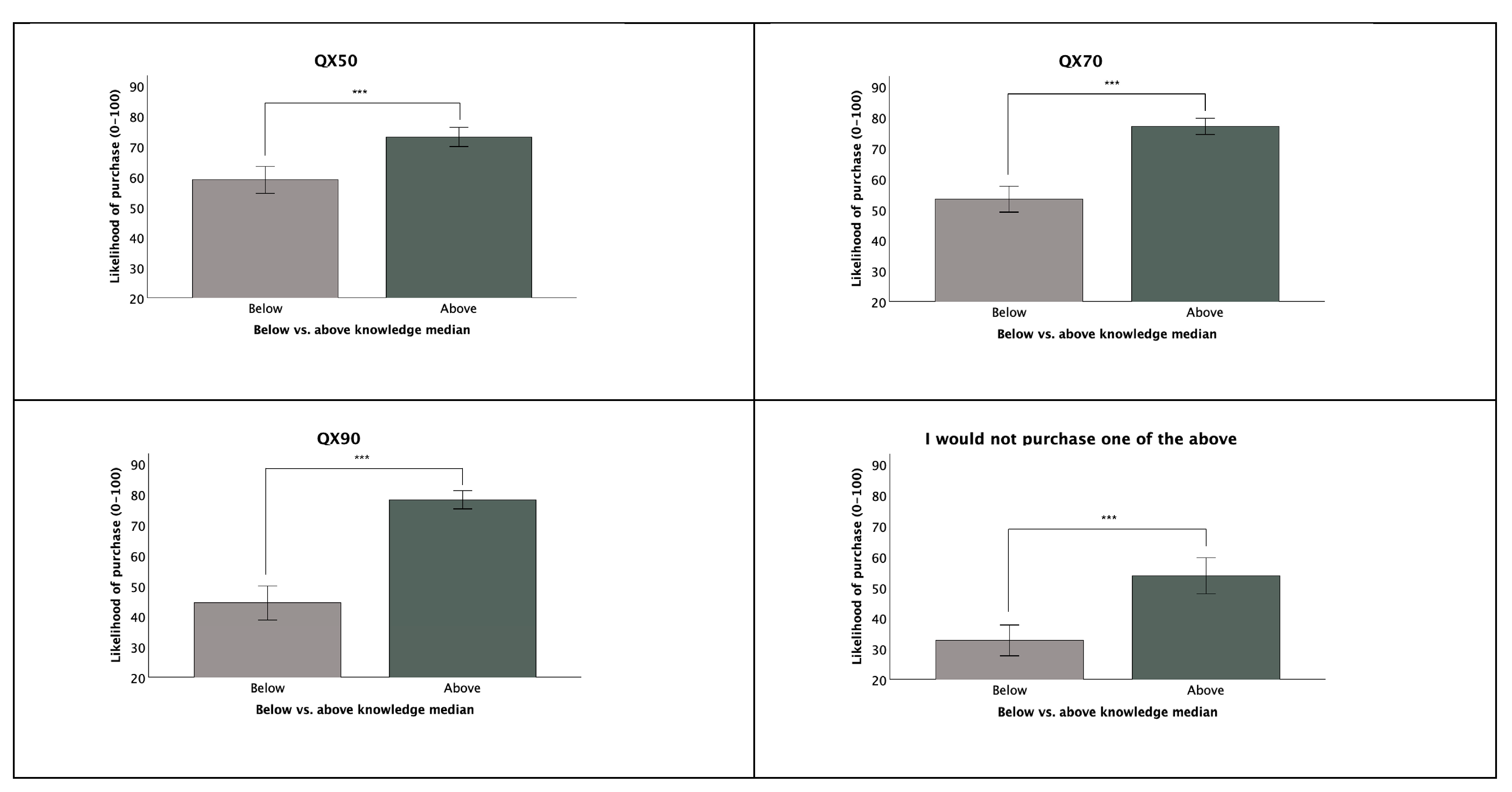 32]. Our exploratory analyses using only the below-median knowledge subset showed significant anchoring effects for the QX90 and ‘would not purchase,’ which were the same outcomes with