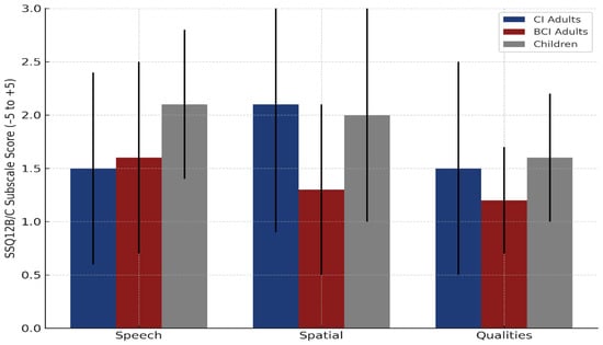 SSQ12A scale: speech, spatial hearing, quality of hearing (0–10 scale).