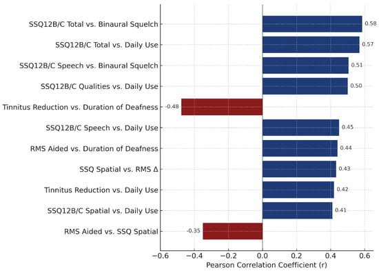 Finally, the observational design of this study inherently limits causal inferences. All implant decisions were made by the clinical team based on national program criteria and patient-specific factors, without randomization or blinding. Despite these limitations, statistically robust effects were observed in several key domains (e.g., localization, binaural squelch, SSQ12 improvement), supporting the overall consistency and relevance of the findings.