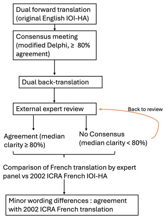 Flowchart summarizing the steps taken to compare the French translation of the IOI –HA performed by our expert panel to the ICRA published French translation of the IOI-HA.