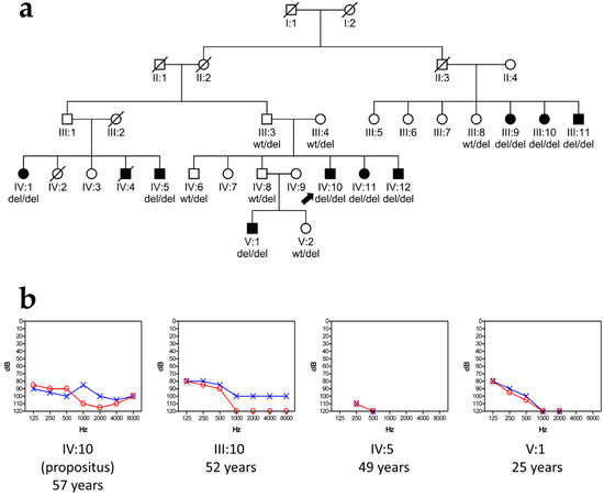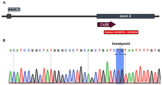 - Feldmann, D.; Le Maréchal, C.; Jonard, L.; Thierry, P.; Czajka, C.; Couderc, R.; Ferec, C.; Denoyelle, F.; Marlin, S.; Fellmann, F. A New Large Deletion in the DFNB1 Locus Causes Nonsyndromic Hearing Loss. Eur. J. Med. Genet. 2009, 52, 195–200. [Google Scholar] [CrossRef]