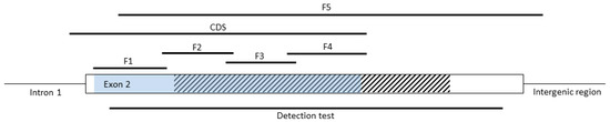 | F1–F4 | 96 °C, 5 min/94 °C for 40 s, 60 °C for 40 s, 72 °C for 30 s (30 cycles)/72 °C, 7 min |