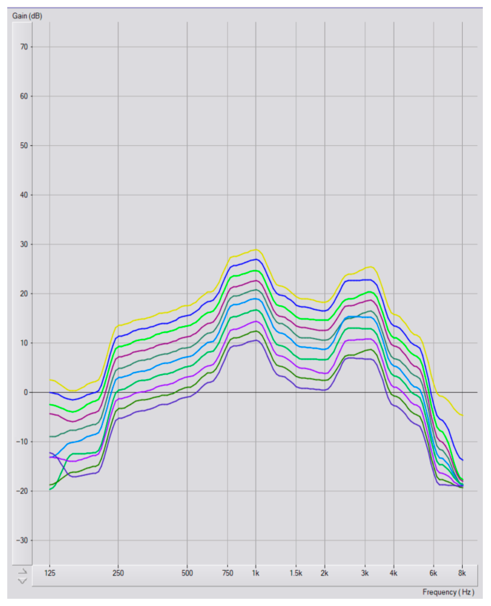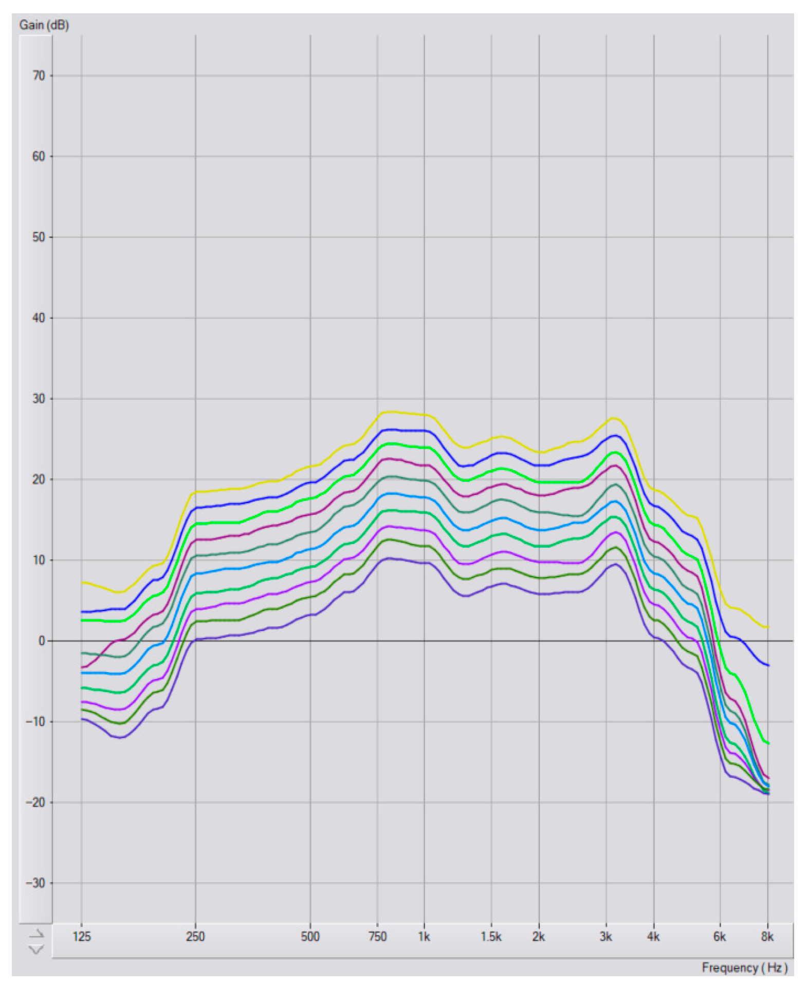 - Knoetze, M.; Manchaiah, V.; Cormier, K.; Schimmel, C.; Sharma, A.; Swanepoel, D.W. Gain Analysis of Self-Fitting Over-the-Counter Hearing Aids: A Comparative and Longitudinal Analysis. Audiol. Res. 2025, 15, 17. [Google Scholar] [CrossRef] [PubMed]