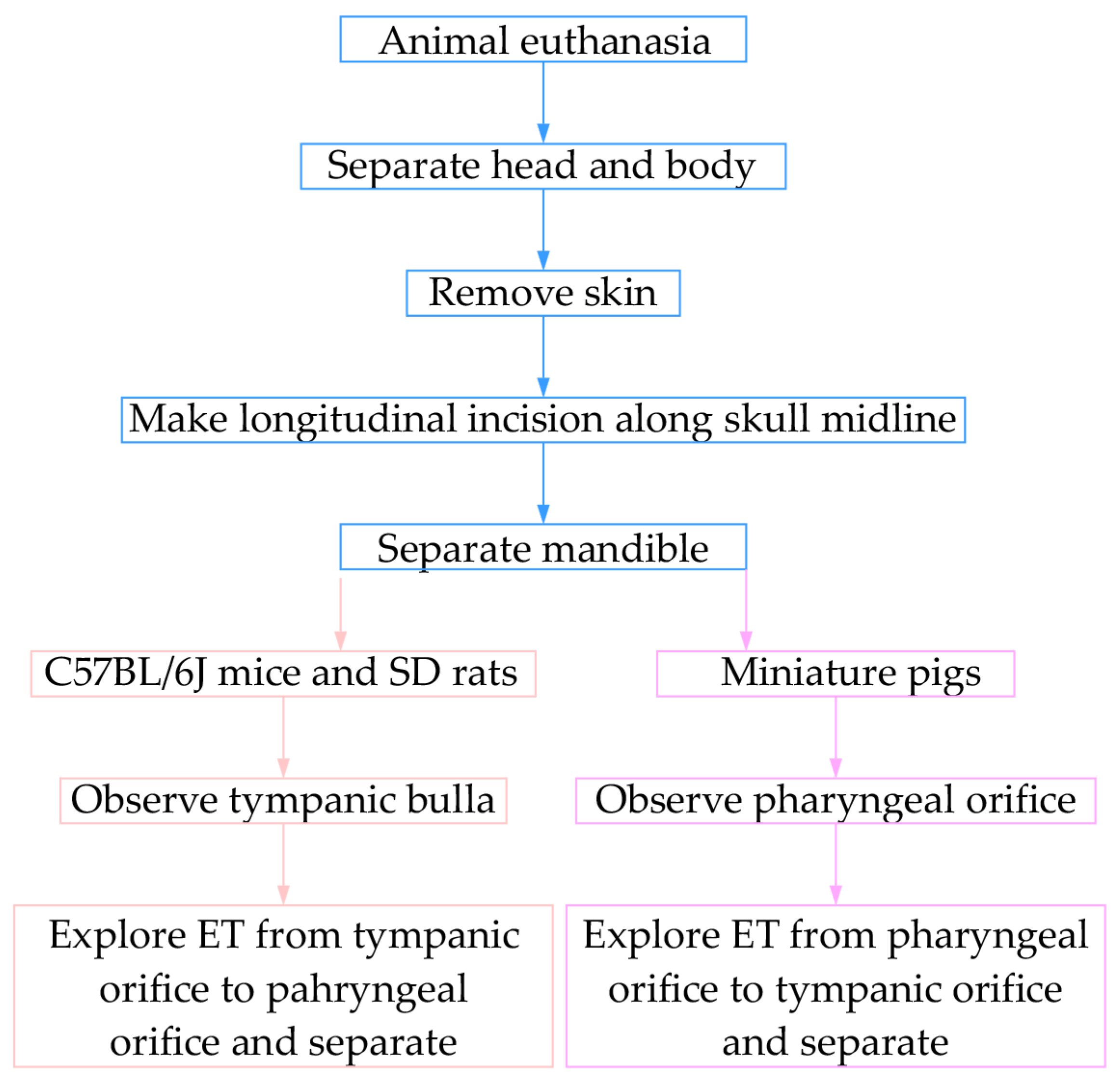 - An, F.W.; Yuan, H.; Guo, W.; Hou, Z.; Cai, J.; Luo, C.; Yu, N.; Jiang, Q.; Cheng, W.; Liu, W.; et al. Establishment of a large animal model for eustachian tube functional study in miniature pigs. Anat. Rec. 2019, 302, 1024–1038. [Google Scholar] [CrossRef]