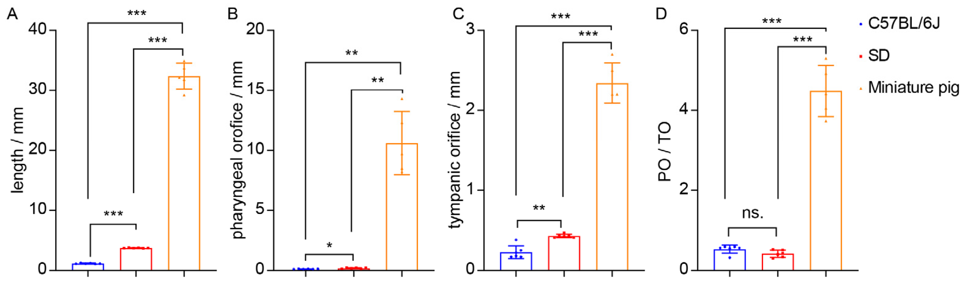 Chicago/Turabian StyleLi, Rui, Yueqi Wang, Huaicun Liu, Xuan Fang, Quancheng Cheng, Man Li, Huiru Ding, Chao Wang, Ziyuan Wang, Baoshi Fan, and et al. 2025. "Comparative Anatomical and Morphometric Analysis of Eustachian Tube Across Species" Audiology Research 15, no. 5: 141. https://doi.org/10.3390/audiolres15050141