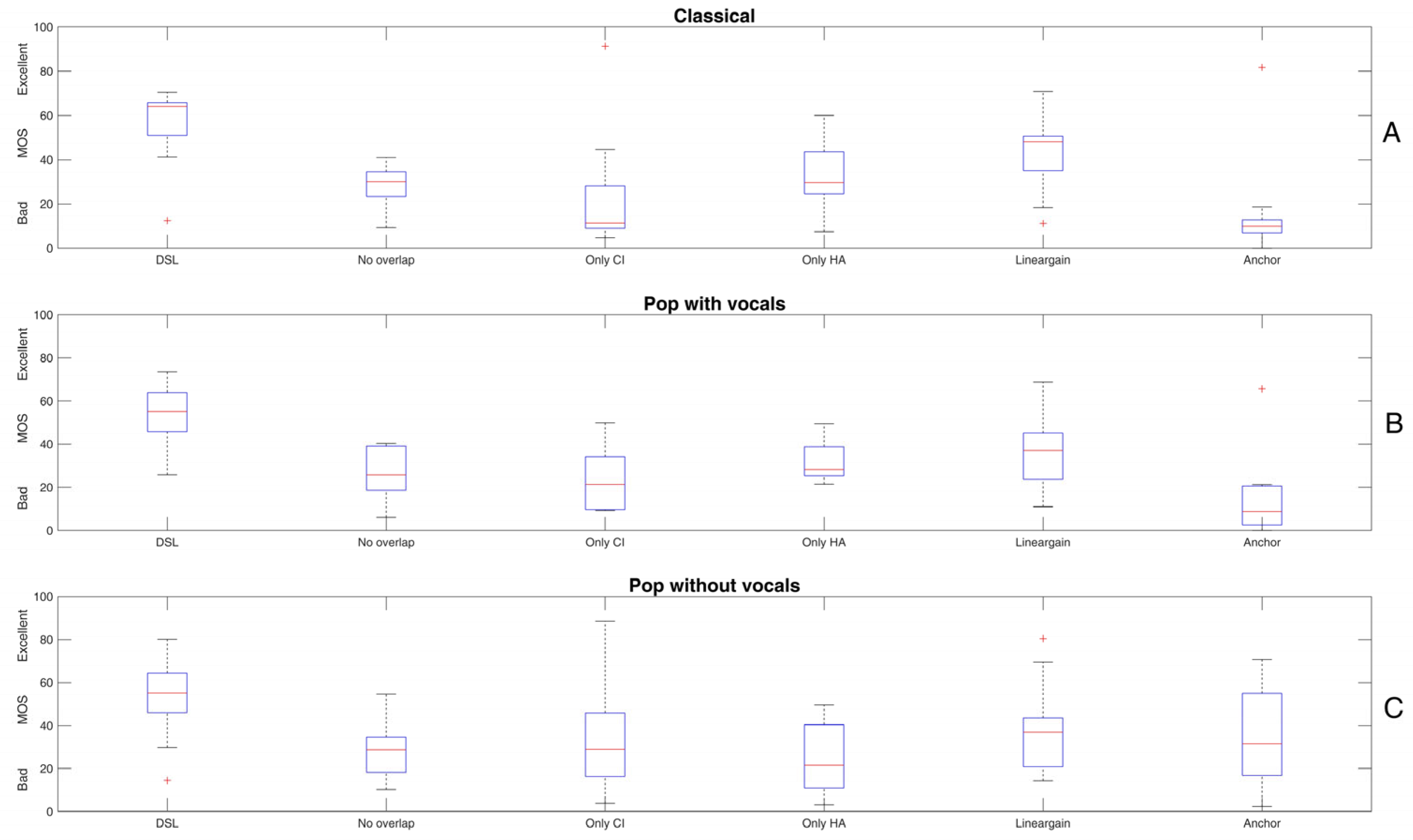 - Hake, R.; Bürgel, M.; Lesimple, C.; Vormann, M.; Wagener, K.C.; Kuehnel, V.; Siedenburg, K. Perception of recorded music with hearing aids: Compression differentially affects musical scene analysis and musical sound quality. Trends Hear. 2025, 29, 23312165251368669. [Google Scholar] [CrossRef]