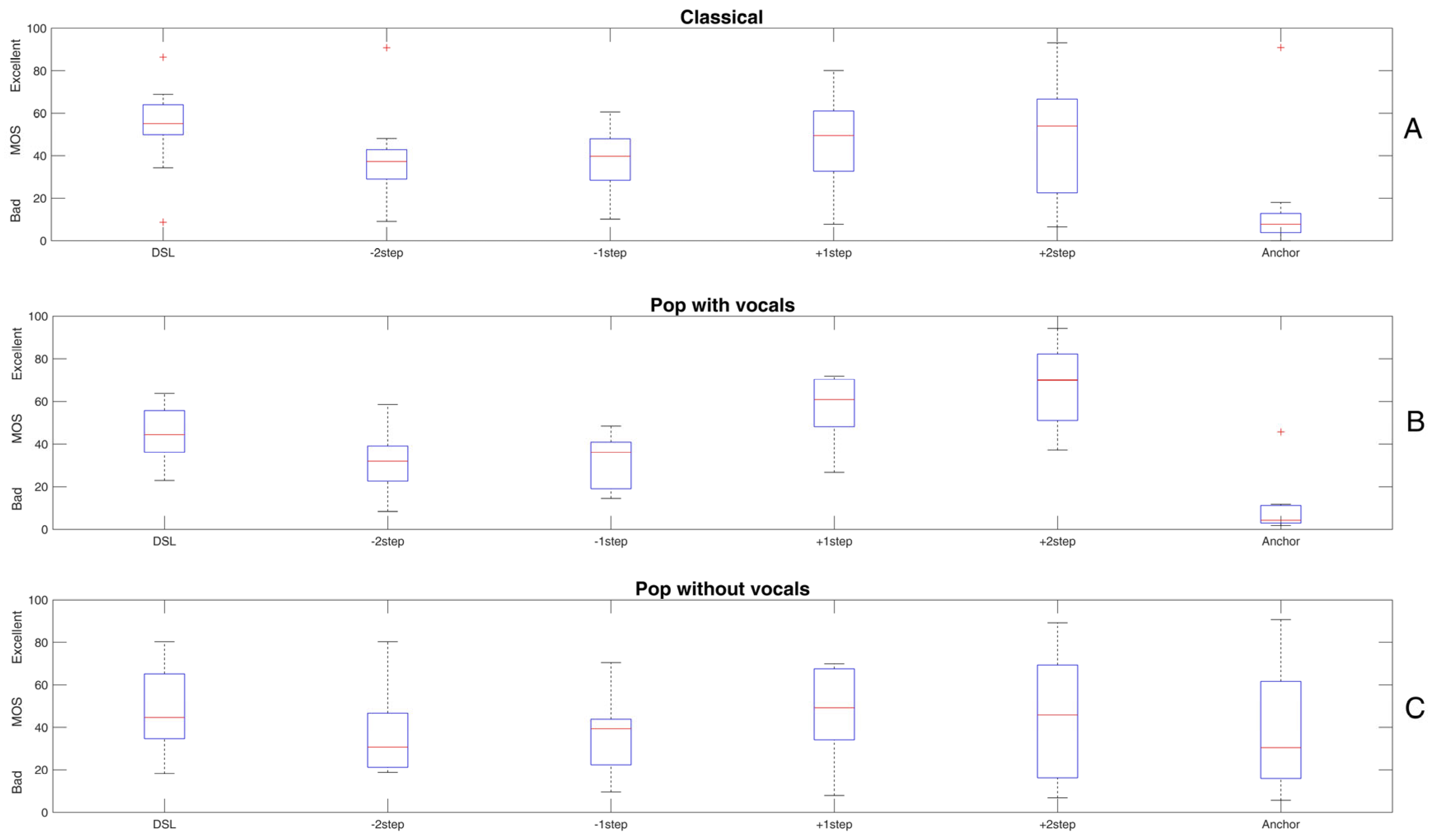 - ITU-R BS.1534-2; Method for the Subjective Assessment of Intermediate Quality Level of Audio Systems. BS Series, Broadcasting Service (Sound); International Telecommunication Union: Geneva, Switzerland, 2014.