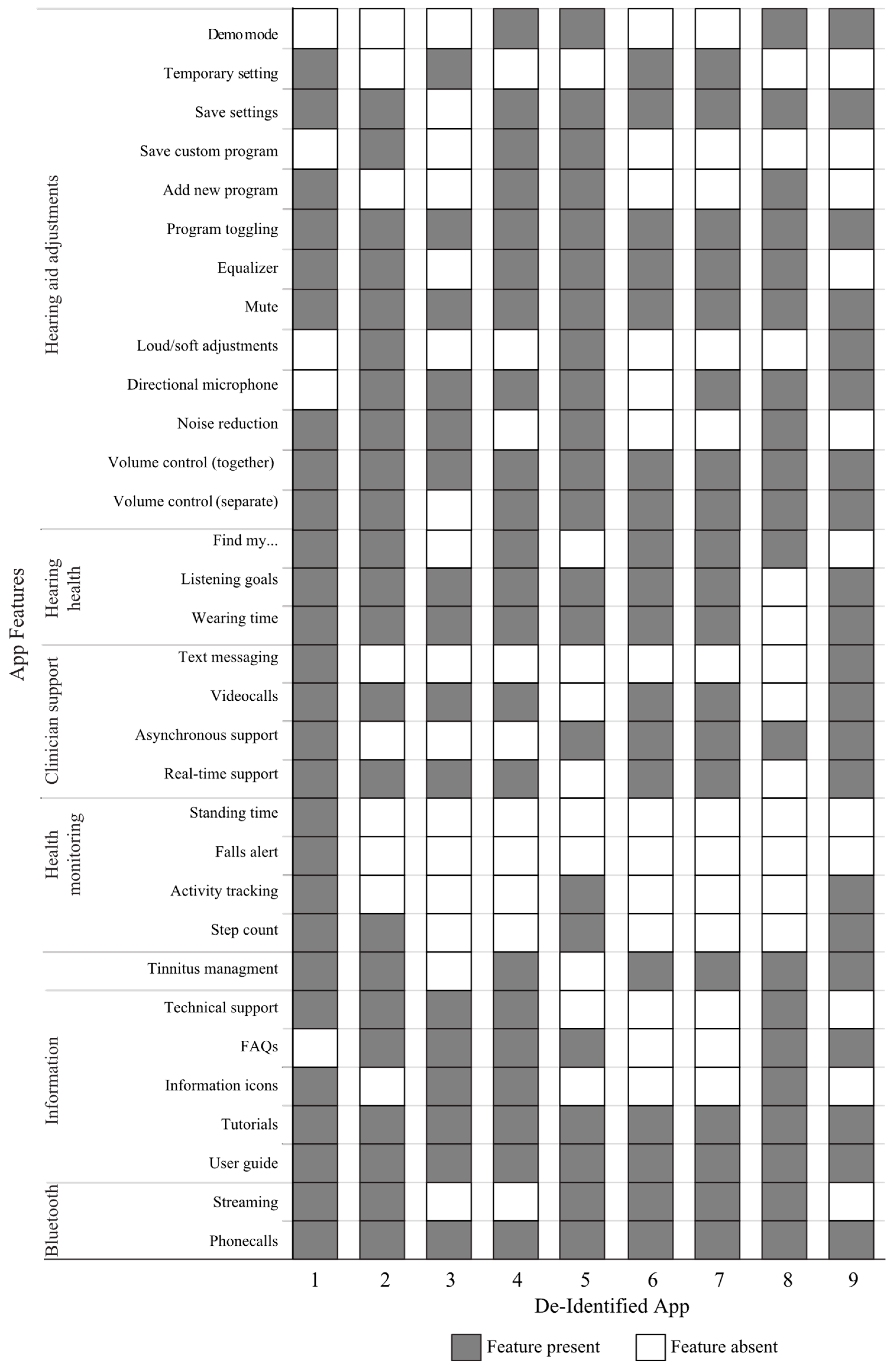 - Ross, F. Hearing aid accompanying smartphone apps in hearing healthcare. A systematic review. Appl. Med. Inform. 2020, 42, 4. [Google Scholar]