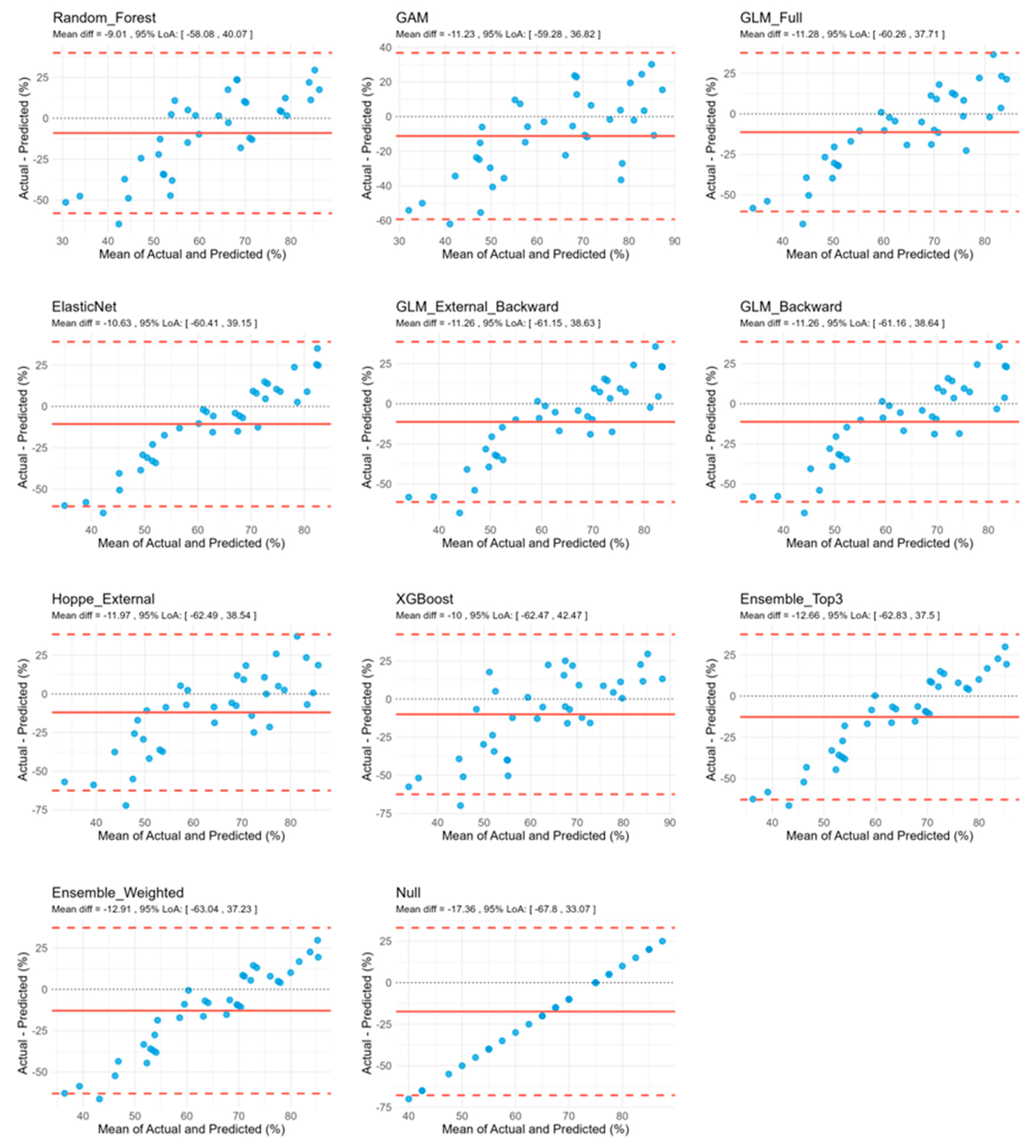 | Model | RMSE | MAE | R2 | SD | Bias | Upper LoA | Lower LoA | Pb Slope | Pb Intercept | Correlation |