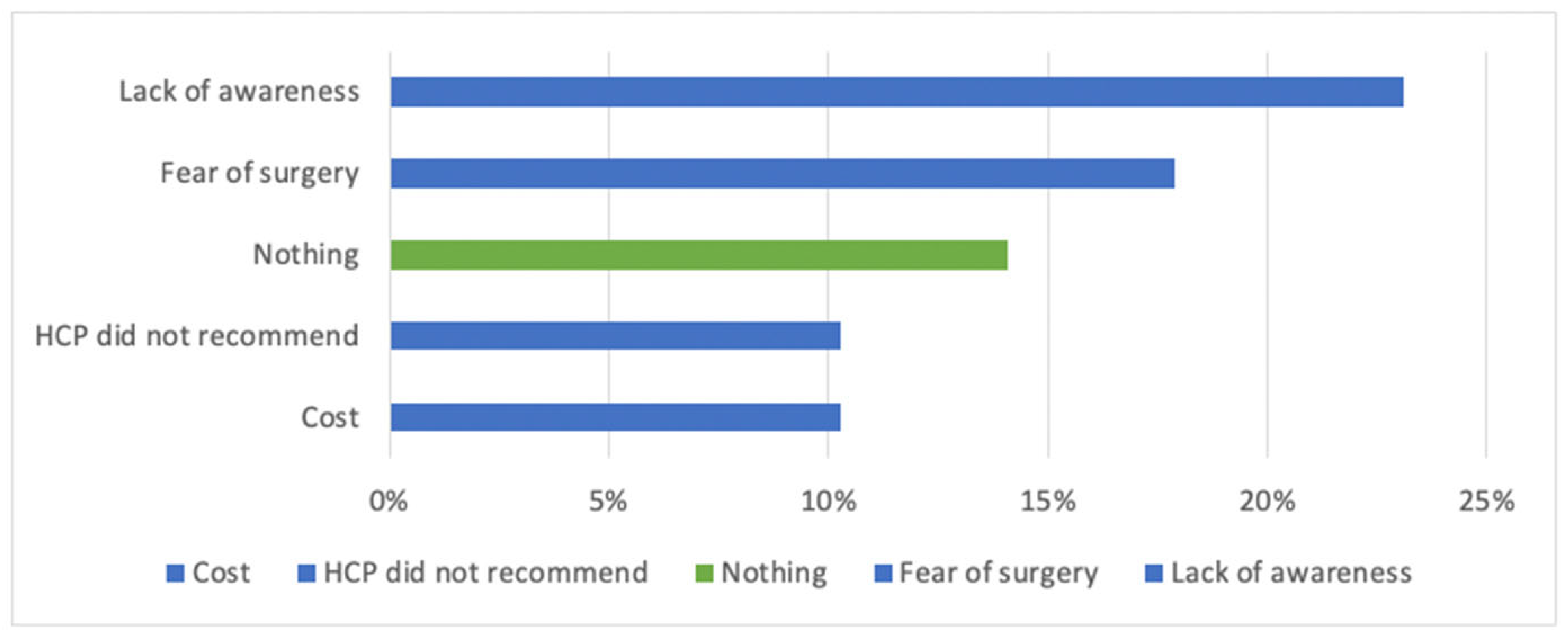 - Surgical outcomes (device type, implant type, and subjective perspectives on outcomes);