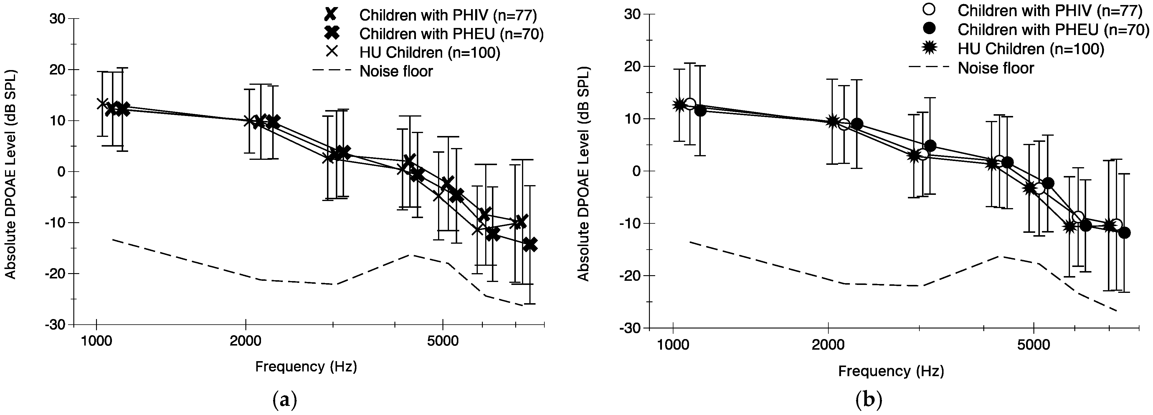 - Torre, P., III; Yao, T.; Zeldow, B.; Williams, P.; Hoffman, H.; Siberry, G.; Pediatric HIV/AIDS Cohort Study. Distortion product otoacoustic emission data in perinatally HIV-infected and HIV-exposed but uninfected children and adolescents in the pediatric HIV/AIDS cohort study. Pediatr. Infect Dis. J. 2015, 34, 276–278. [Google Scholar] [CrossRef] [PubMed]