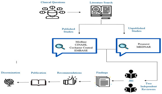 Initially, all titles and abstracts were screened independently by at least two reviewers. All full texts of the studies which passed through the initial stage were retrieved and assessed against the review inclusion criteria in detail. These eligible studies were again appraised by at least two reviewers independently using the Joanna Briggs Institute JBI Critical Appraisal Tools [15]. The JBI appraisal has different checklists to be applied against different study designs. The instrument consists of 10 items that assess the methodological quality of a study and determines the extent to which a study has addressed the possibility of bias in its design, conduct, and analysis. The results of the JBI appraisal have been taken into full account and used to inform the synthesis and interpretation of the results of the recommendations (Figure 1).