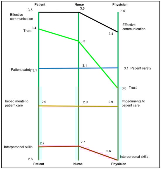 Three features of our concept map require consideration. First, clusters are comparatively large but of approximately equal size, underscoring the observation that no one concept is more important than any other in terms of how nurse–doctor communication impacts patient care. The sizes of the clusters could be due to important differences in how participants organized statements into groups during the clustering task. Second, statements within the clusters are not located close to one another, suggesting clusters may lack a clear conceptual focus [24], underscoring the complexities of how patient care is impacted by nurse–doctor communication. Authors of reviews of interprofessional communication have also highlighted the complexity of interdisciplinary working [32,33,34]. Potentially, our findings may explain why there are several examples in the literature where authors have focused on targeting a single aspect of nurse–doctor communication (e.g., joint clinical rounding, shared care planning) and failed to show improvements in patient outcomes [35,36]. Finally, two of the clusters (effective communication and interpersonal skills) are particularly close to each other, suggesting that they may be part of a single larger concept.