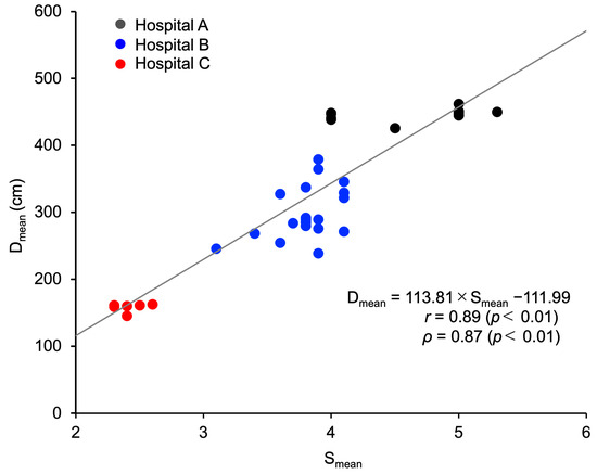 To explore the reasons underlying the differences in Dmean, we analyzed its association with Smean and identified a strong positive correlation between the two (r = 0.89, ρ = 0.87, p < 0.01; Figure 5).