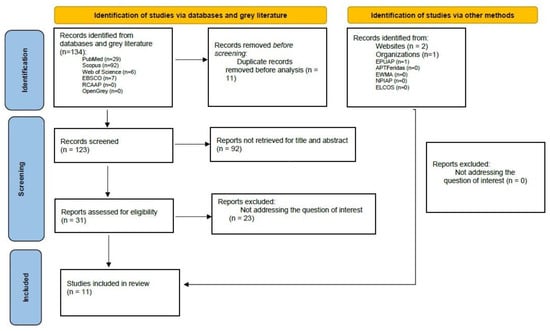 Figure 1 presents the PRISMA diagram, in which the articles initially identified, the entire selection period and the 11 final articles included in this scoping review are verified.