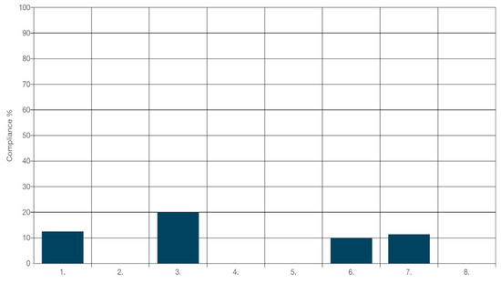 Upon completion of the implementation period for the strategies aimed at promoting medication adherence among elderly individuals with chronic diseases, a final audit was conducted. It is worth mentioning that this audit adhered to the same methodology and criteria previously defined by JBI, in line with best practices in this area. As illustrated in Figure 3, significant improvements were achieved across all criteria (see Table 1), with criteria 1, 6, 7, and 8 reaching a compliance rate of 100%. Criterion 2 (Adults with chronic diseases are assessed for medication adherence by healthcare professionals in the following components: assessing medication adherence, readiness to change, lifestyle factors, patient treatment goals, barriers to adherence, side effects or persistent symptoms, and level of literacy) obtained the lowest compliance rate (88.57%); however, this was considered quite positive by the researchers.
