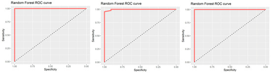 - Robin, X.; Turck, N.; Hainard, A.; Tiberti, N.; Lisacek, F.; Sanchez, J.C.; Müller, M. pROC: An open-source package for R and S+ to analyze and compare ROC curves. BMC Bioinform. 2011, 12, 77. [Google Scholar] [CrossRef] [PubMed]