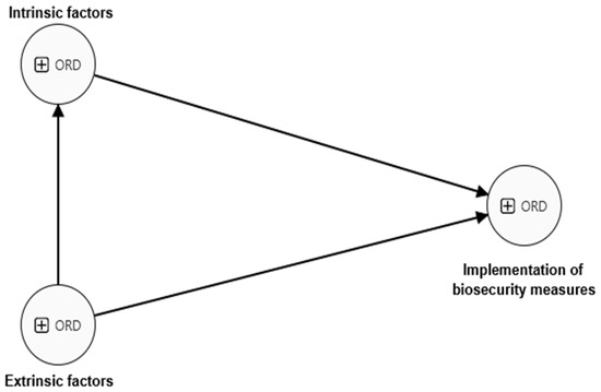 Multiple studies suggest that both extrinsic and intrinsic factors influence the application of biosecurity measures by nursing staff and that the influence of extrinsic factors may be mediated by intrinsic factors. With respect to extrinsic factors, the work environment has a significant effect on the adoption of biosecurity practices. Office-based providers adopted biosecurity measures earlier and more quickly [36], suggesting that workplace characteristics, such as resource availability and institutional support, influence the implementation of these measures. Moreover, facility design and administrative controls compromise biosecurity performance in some laboratories [4], further highlighting the importance of environmental factors. However, the influence of these extrinsic factors appears to be mediated by intrinsic factors, such as the personal and professional characteristics of nursing staff. A study revealed that nursing professionals with unfavorable personal factors, such as being young adults, lacking specialized studies, and not having training in biosecurity, were less likely to implement biological safety measures effectively [5]. This suggests that individual attributes and the level of education and training, which are intrinsic factors, play a role in translating external influences into actual biosecurity behaviors. Furthermore, a study using the biosecurity incident response competence scale for nurses revealed significant differences in scores on the basis of intrinsic characteristics such as years of work experience, degrees, and participation in biosecurity training [38]. This finding implies that intrinsic factors shape the competence and ability of nursing staff to respond to external demands related to biosecurity. The mediating influence of intrinsic factors was also evidenced in a study conducted in Morocco, which reported that the level of knowledge about biosecurity among laboratory staff increased with work experience [33]. This suggests that professional development programs and training, which are extrinsic factors, impact biosecurity practices by enhancing individuals’ knowledge and skills. Consequently, it can be inferred that extrinsic factors influence the implementation of biosecurity measures, and this influence is mediated by intrinsic factors by nursing staff. Thus, the following hypothesis is formulated: