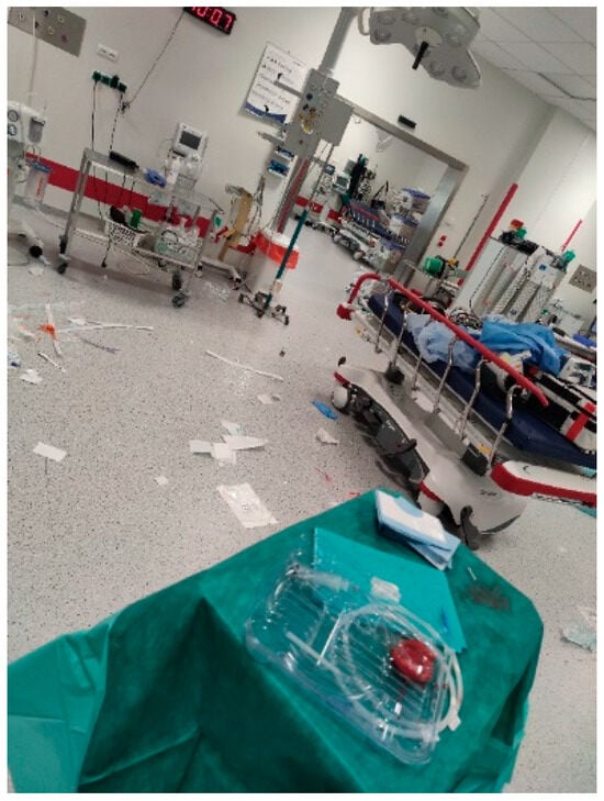 Work Life Balance (#107). Caption: “Work Life Balance: Emergency room. Chaos. Disorder. A remnant of the ‘acute situation’ with patient. There was a resuscitation. It takes a toll on the psyche. Cardiac arrest. It’s hard to strike a balance when it’s a difficult situation for the patient’s family and staff. It’s hard to break away from it. Risks of health disorders-stress” (Source: Master’s Nursing Student, Photo 107, Group 4).