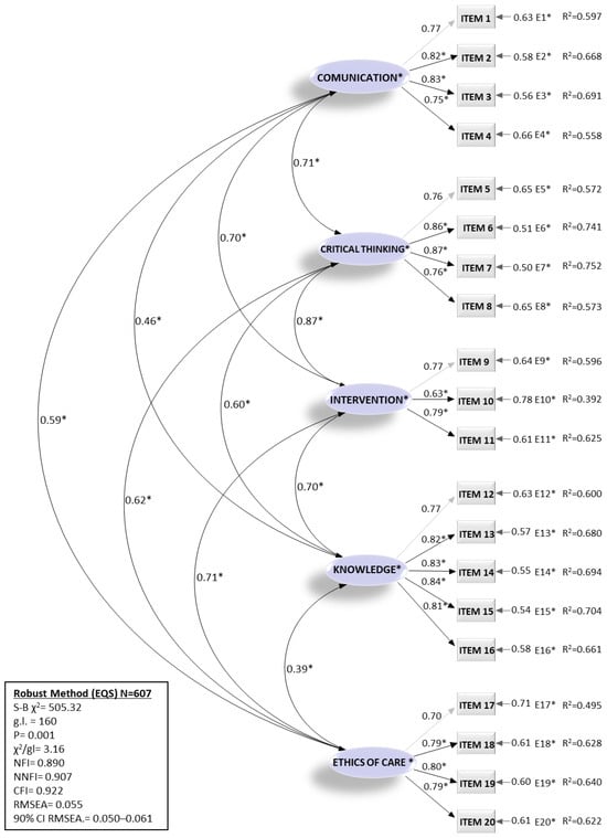 | 5. Ethics of Care | 0.638 | 0.552 * | 0.493 * | 0.529 * | 0.339 * |