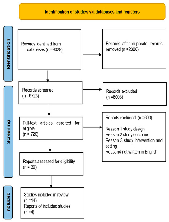 | Selection of sources of evidence | 14 | Give number of sources of evidence screened, assessed for eligibility, and included in the review, with reasons for exclusions at each stage, ideally using a flow diagram. | 14 |