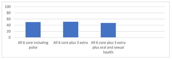 Figure 2 shows the percentage of patients who received more than six elements of the health check. Only 50% of patients with SMI had had their pulse rate measured. Enquiry about oral and sexual health is low.