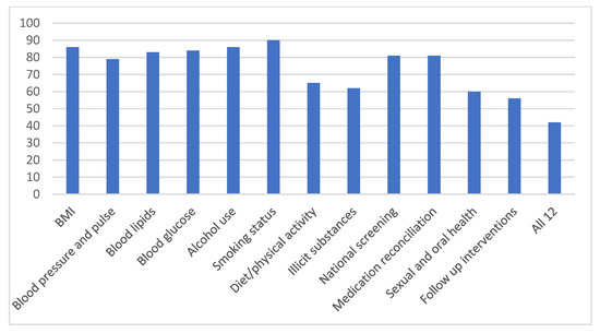Percentage of the elements of the physical health check recorded in the last 12 months (n = 5431).