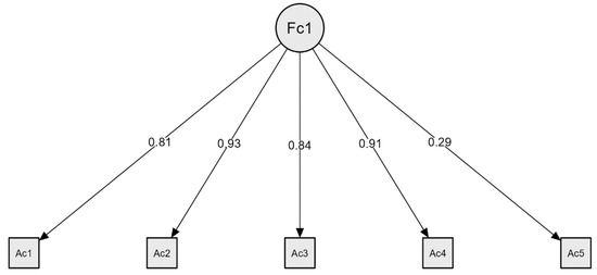 Secondly, a confirmatory factor analysis was performed. The factor loadings ranged from 0.29 to 0.93 (Figure 1). The model fit indices were determined as follows: χ2 = 33.66, df = 4, p < 0.001, RMSEA = 0.137, SRMR = 0.04, GFI = 0.99, CFI = 0.99.