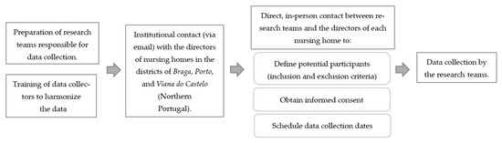 Data collection will be conducted according to prior agreements established between the directors of each participating nursing home and the research teams. Figure 1 presents a detailed description of the procedure before data collection.