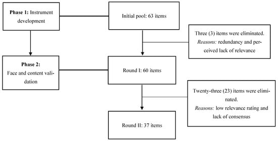 The study comprised two phases: (1) instrument development and (2) face and content validation through a two-round modified Delphi study.