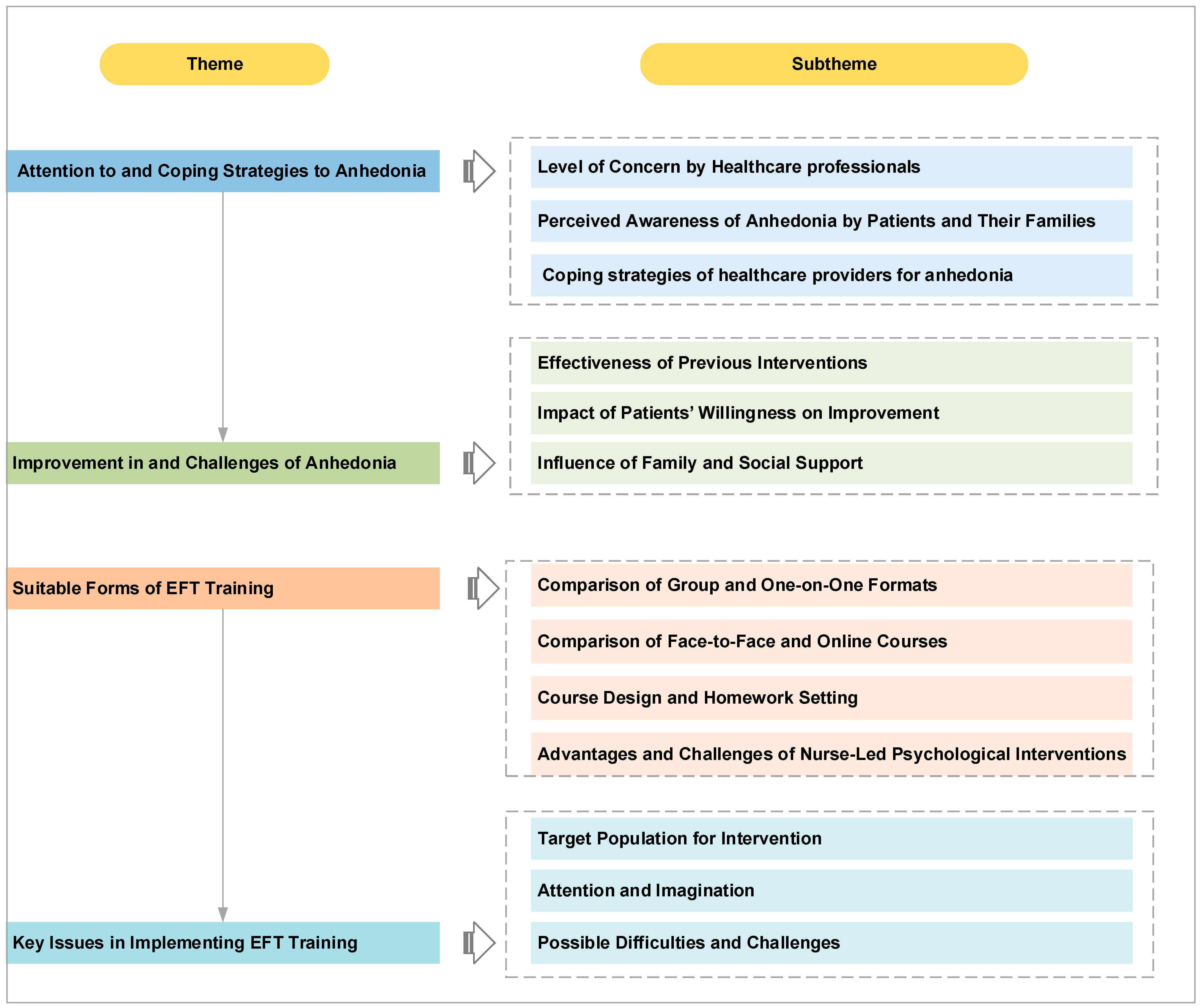 Chicago/Turabian StylePan, Minghao, Huijing Zou, Dan Luo, Xiao Qin Wang, Qian Liu, Meiyu Shen, Xiaofen Li, Xuan Gong, and Bing Xiang Yang. 2025. "Healthcare Professionals’ Perceptions of Anhedonia in Major Depressive Disorder and the Possibilities of Episodic Future Thinking Training: A Qualitative Study in a Tertiary Care Hospital" Nursing Reports 15, no. 11: 384. https://doi.org/10.3390/nursrep15110384