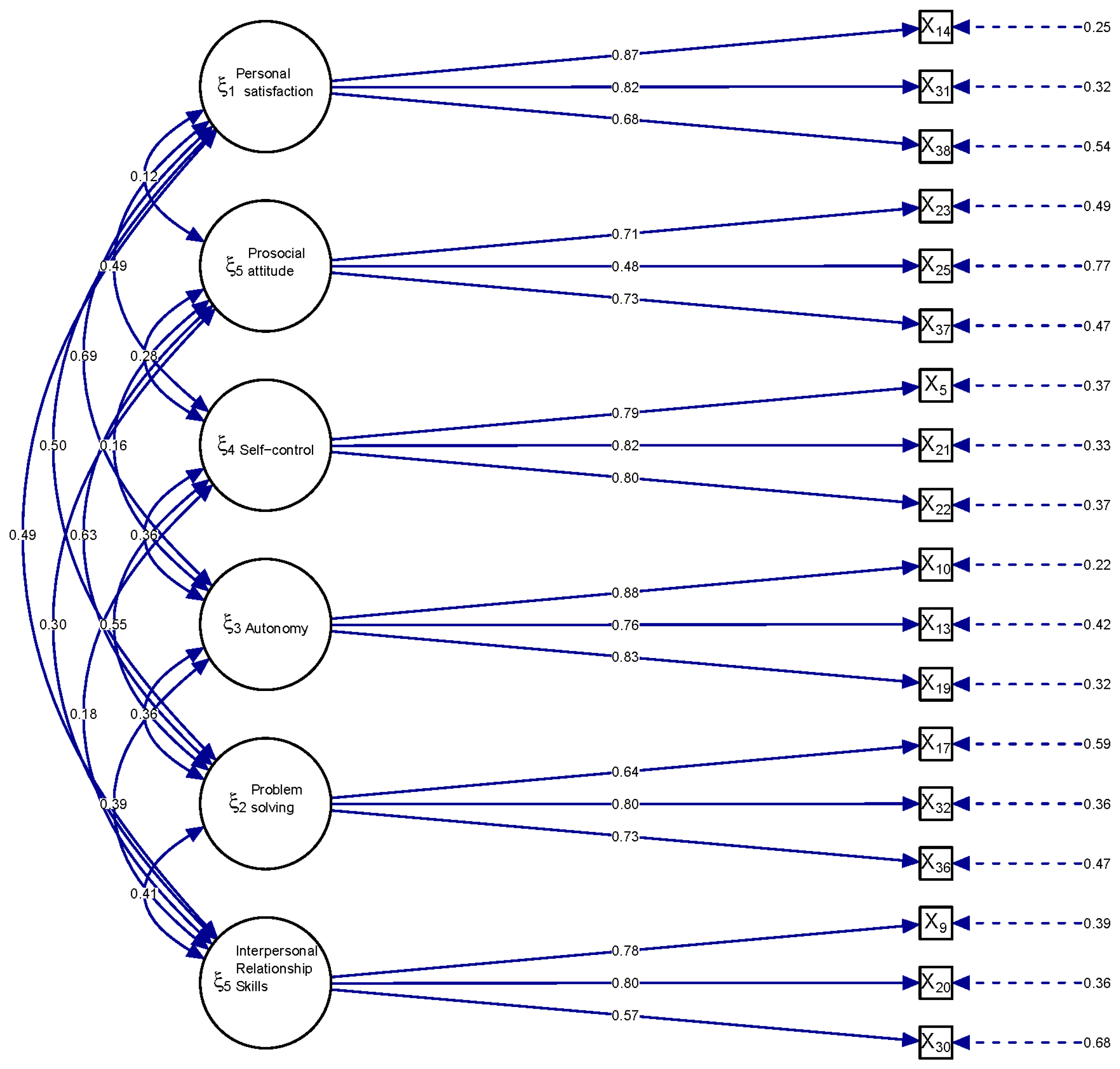 | Personal Satisfaction | Prosocial Attitude | Self-Control | Autonomy | Problem Solving | Interpersonal Relationship Skills | |