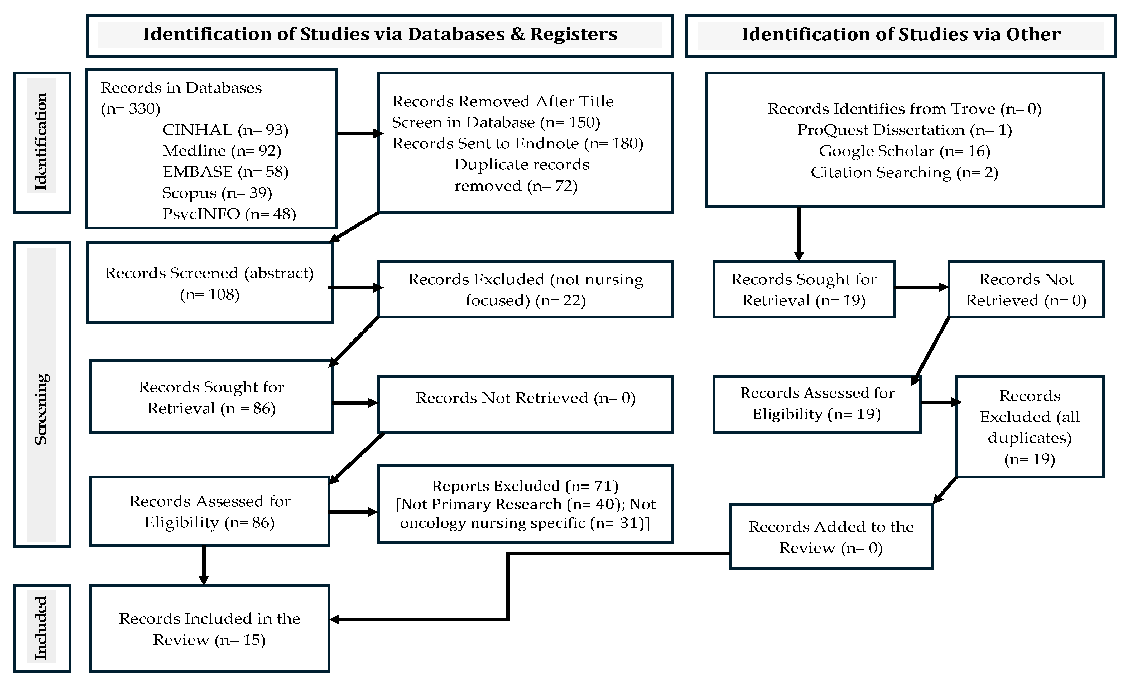 - Parveen, M.; Shashi, K.; Surabhi, M.; Shingade, N.; Kumar, V. The Global Perspective of Oncology Nursing and Its Challenges: Oncology Nursing and Its Challenges. WOCSI J. Med. Sci. 2024, 2, 45–54. [Google Scholar]