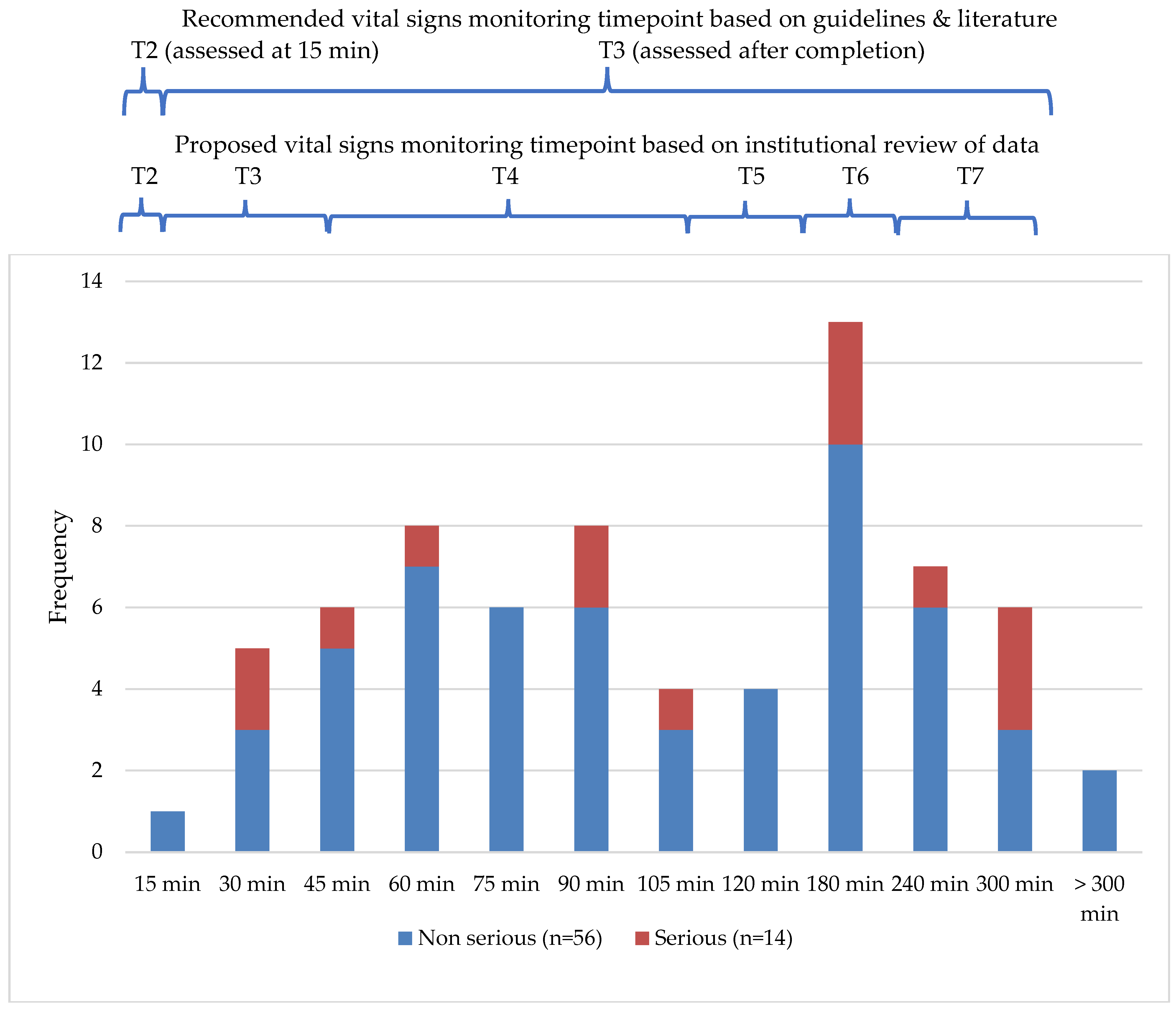 - Sullivan, D.K.; Vu, T.; Richardson, G.; Castillo, E.; Martinez, F. Evaluating the frequency of vital sign monitoring during blood transfusion: An evidence-based practice initiative. Clin. J. Oncol. Nurs. 2015, 19, 516–520. [Google Scholar] [CrossRef]