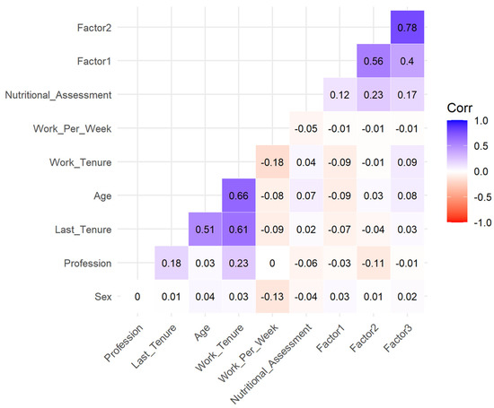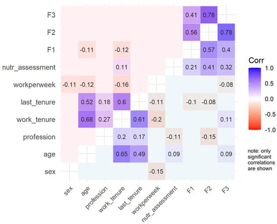 These indices collectively confirm that the three-factor model is well-fitted and adequately explains the variance in the data. The factor loadings also align with the conceptual interpretation of each domain. F1 reflects evidence gathering, recognizing symptoms, and performing calculations for nutritional needs. F2 emphasizes evaluating habits, diagnosing issues, and planning interventions. F3 focuses on implementing practical interventions and supporting dietary needs during meals.