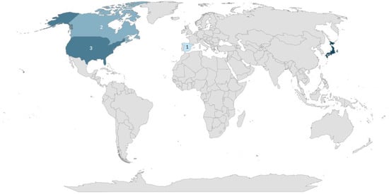 The studies originated from four of countries: Japan (n = 4), the United States (n = 3), Canada (n = 2), and Spain (n = 1). Study methodologies included quantitative studies (n = 7), randomized studies (n = 2), and observational studies (n = 1) (Figure 2). Seven studies focused solely on nursing students, two studies included a mix of nursing students and other healthcare professionals (e.g., educators, medical experts, physicians), and one study involved a mix of nursing students and nurses. No students of other healthcare professions were identified in the literature. All the studies took place in simulation laboratories.