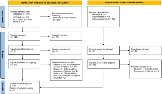 - Peters, M.D.J.; Godfrey, C.; McInerney, P.; Khalil, H.; Larsen, P.; Marnie, C.; Pollock, D.; Tricco, A.C.; Munn, Z. Best Practice Guidance and Reporting Items for the Development of Scoping Review Protocols. JBI Evid. Synth. 2022, 20, 953–968. [Google Scholar] [CrossRef] [PubMed]