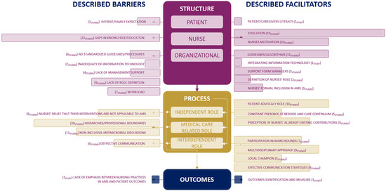 - Bonacaro, A.; Solfrizzo, F.G.; Regano, D.; Negrello, F.; Domeniconi, C.; Volpon, A.; Taurchini, S.; Toselli, P.; Baesti, C. Antimicrobial Stewardship in Healthcare: Exploring the Role of Nurses in Promoting Change, Identifying Barrier Elements and Facilitators—A Meta-Synthesis. Healthcare 2024, 12, 2122. [Google Scholar] [CrossRef]
