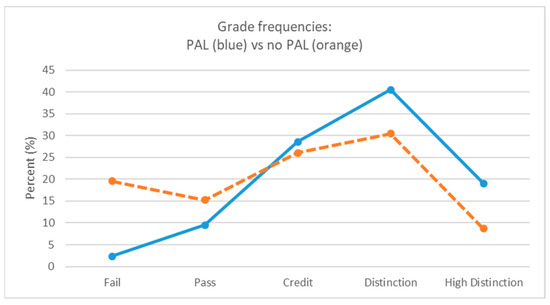 Final unit grade frequencies (fail to high distinction) with LabPAL versus no LabPAL.
