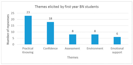 The majority of comments made by first-year participants related to the themes of ‘practical knowing’ and gaining confidence. Along with assessment, environment and emotional support, the number of statements relating to each theme is presented in Figure 2. Students also made a number of comments relating to the benefits of having more time with their LabPAL (compared with tutor) as well as the practice sessions contributing to their decision to continue with their studies. The themes were not mutually exclusive and many overlapped with one or more others (for example, support was linked to gaining confidence).