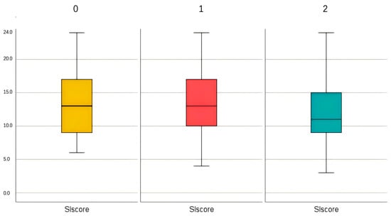 Boxplot of Social Frailty Severity and Social Isolation Score. 0 = without social frailty; 1 = with the pre-frail stage of social frailty; 2 = with social frailty; SI = social isolation.