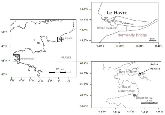 Location of sampling sites (Seine Estuary, Bay of Douarnenez).
