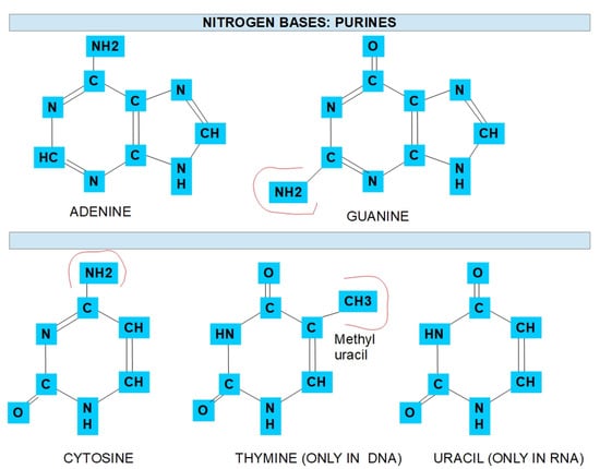 Cell division requires adequate nucleotide pools for increased DNA and RNA production in highly proliferative cells. The DNA building blocks consist of pyrimidines, purines, deoxyribose, and phosphate. Two types of nitrogen bases form part of DNA and RNA: purines and pyrimidines (Figure 1).