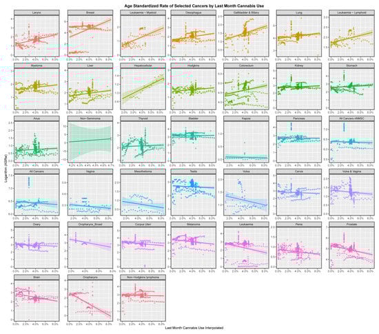 Rates of selected cancers by last month’s cannabis exposure.