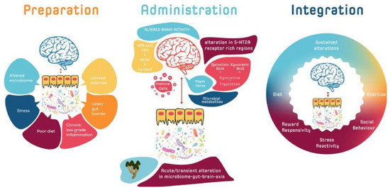 - Mayer, E.A.; Tillisch, K.; Gupta, A. Gut/brain axis and the microbiota. J. Clin. Investig. 2015, 125, 926–938. [Google Scholar] [CrossRef]