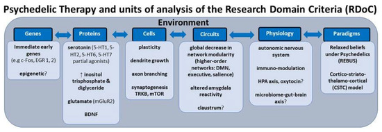 - Kelly, J.R.; Gillan, C.M.; Prenderville, J.; Kelly, C.; Harkin, A.; Clarke, G. Psychedelic Therapy’s Transdiagnostic Effects: A Research Domain Criteria (RDoC) Perspective. Front. Psychiatry 2020, 12, 800072. [Google Scholar] [CrossRef] [PubMed]